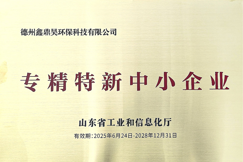 2025年6月24日,德州鑫鼎昊環保科技有限公司,連續兩次榮獲,山東省“專精特新”企業稱號。我們將繼續,將設備做精做新做強,保證品質,合理定價。